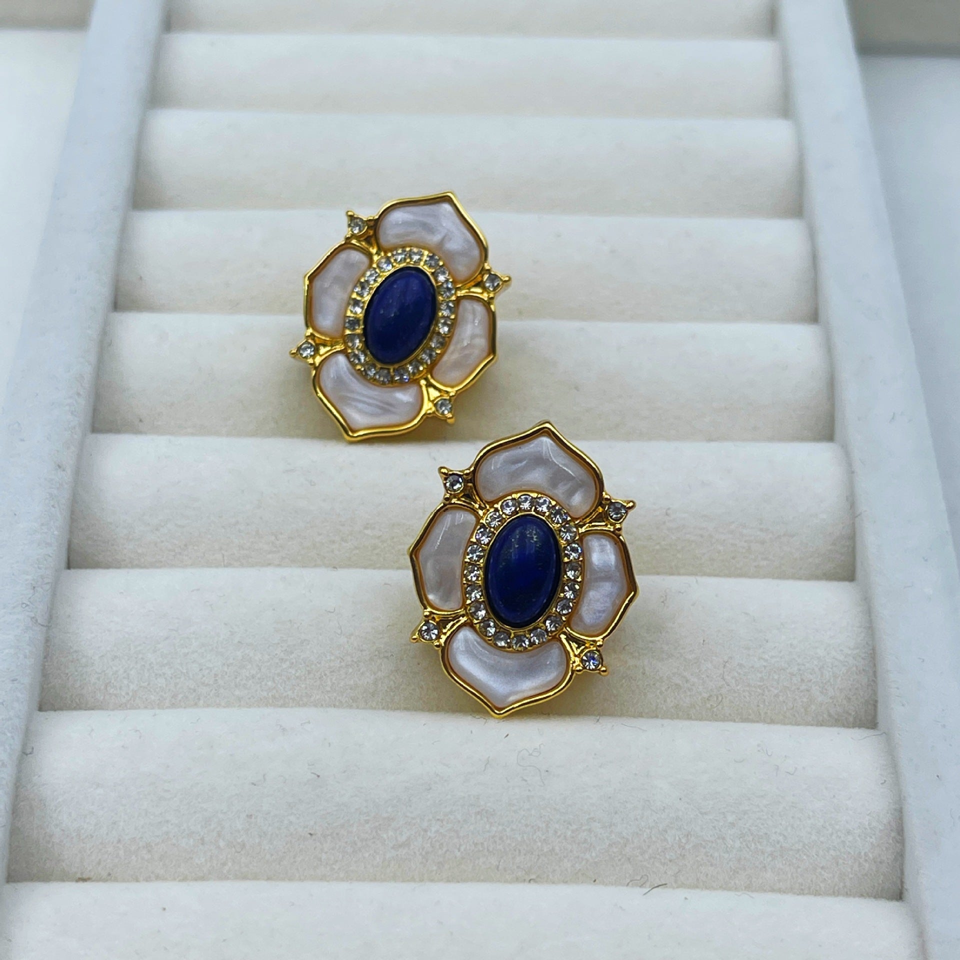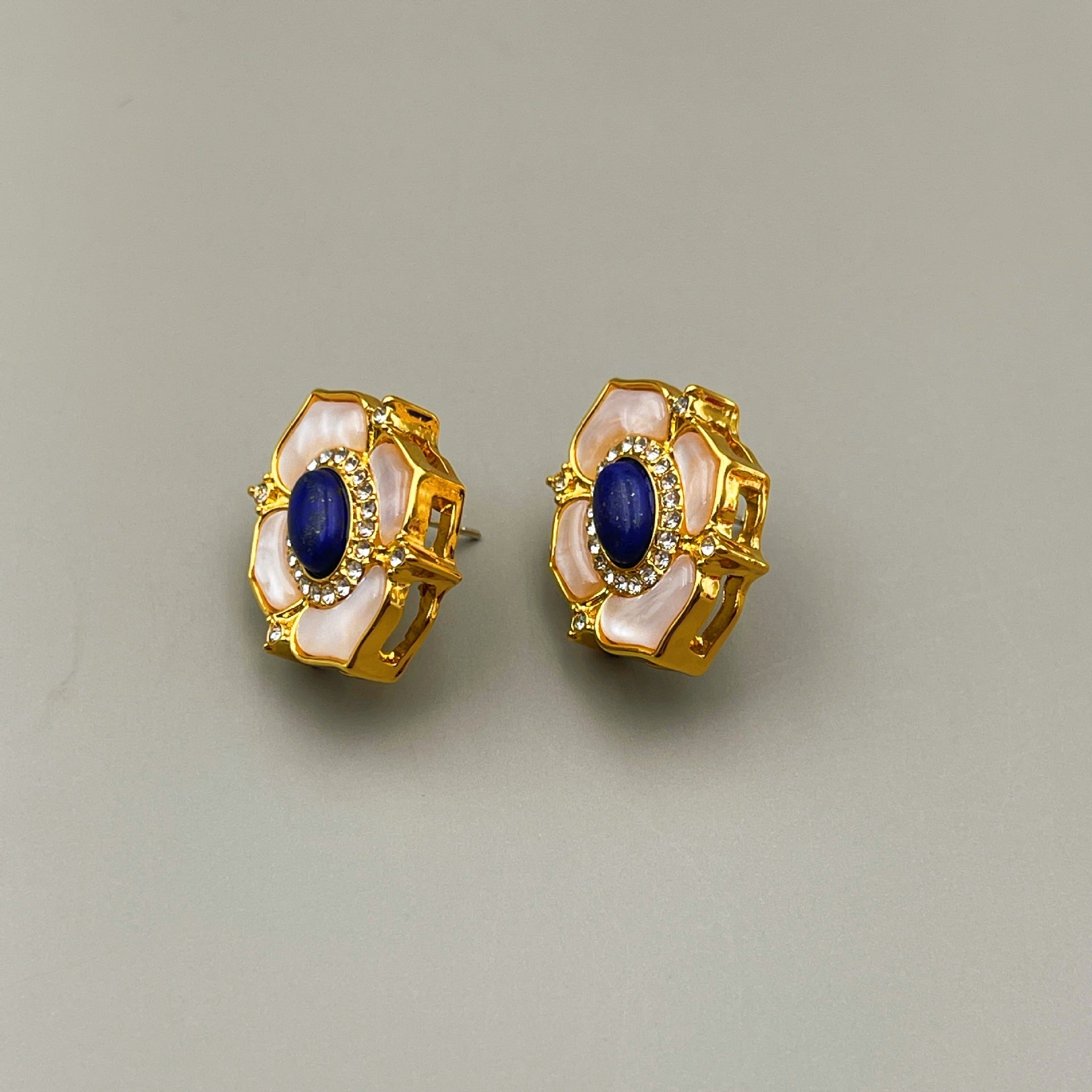 925 Silver Needle Simple Natural Lapis Lazuli Camellia Earrings